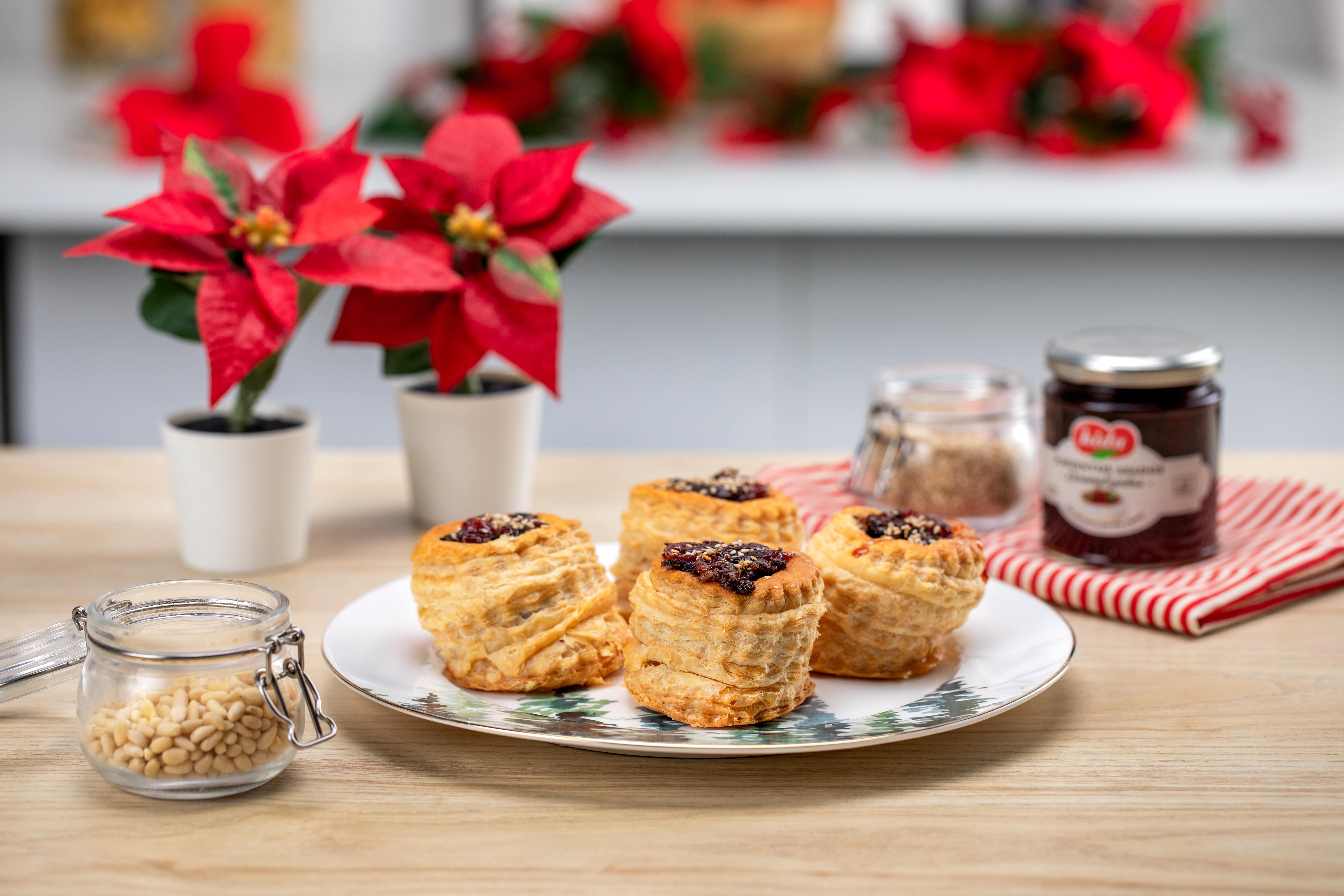 A continuación, rellena los volovanes con la morcilla y reparte 1 cucharadita de Pimiento Caramelizado sobre los mismos.