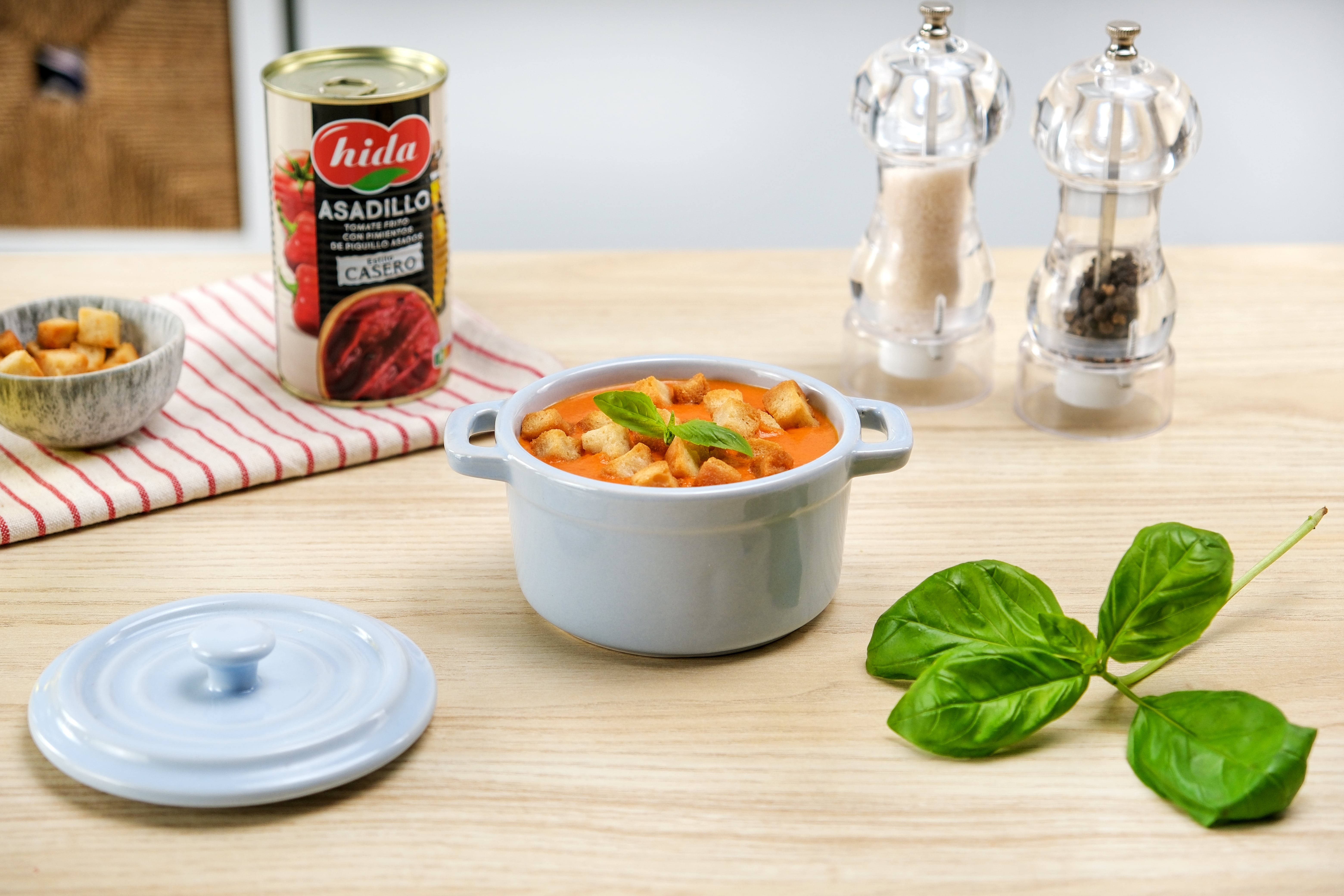 Disfruta de esta deliciosa sopa cremosa de asadillo con picatostes que será el toque perfecto para disfrutar en cualquier ocasión especial. Tómala caliente o templada y añade un toque crujiente con picatostes o semillas.