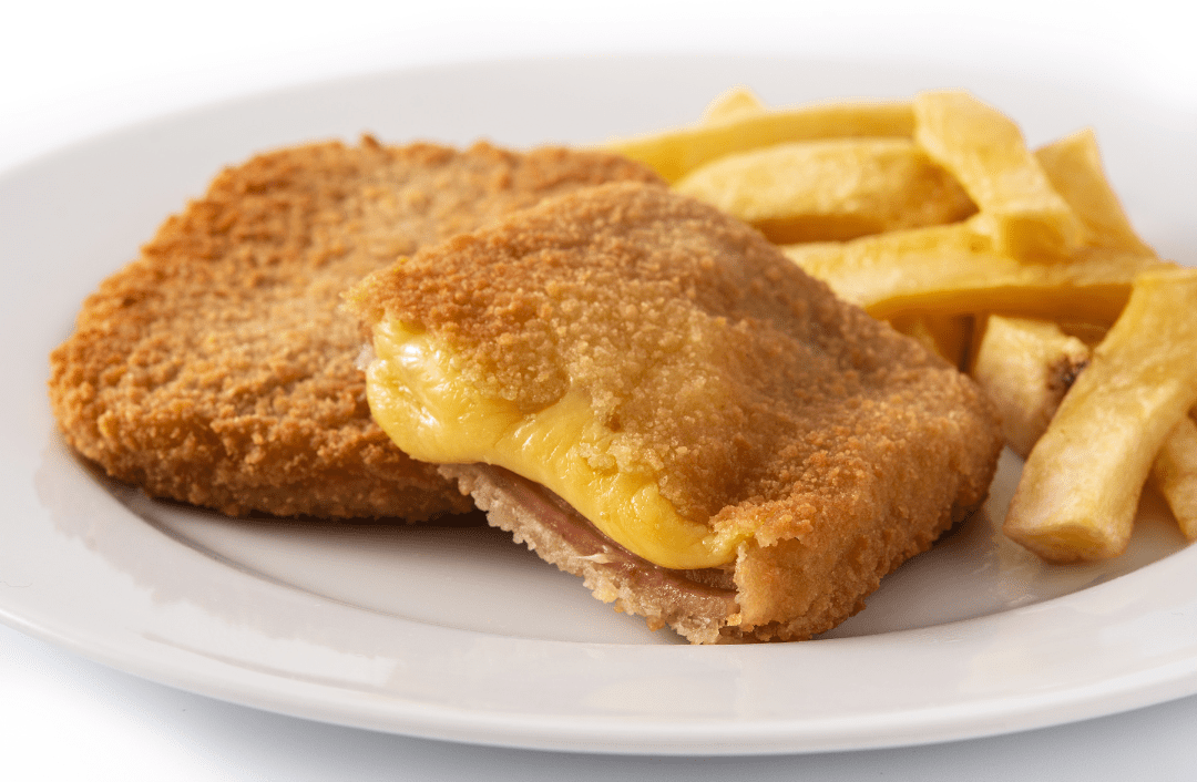 El San Jacobo es una preparación empanada rellena de jamón cocido y queso, similar al cordon bleu. Tradicionalmente se elabora con dos lonchas de jamón que envuelven el queso, se empana y se fríe hasta quedar dorado y crujiente.