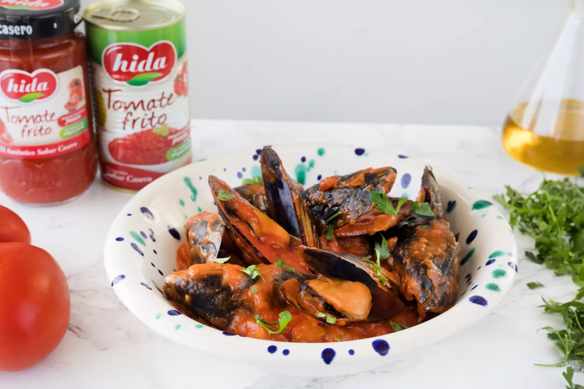 *CON UN FRASCO DE 340G DE Tomate frito HIDA PUEDES PREPARAR 4 RACIONES DE MEJILLONES.
