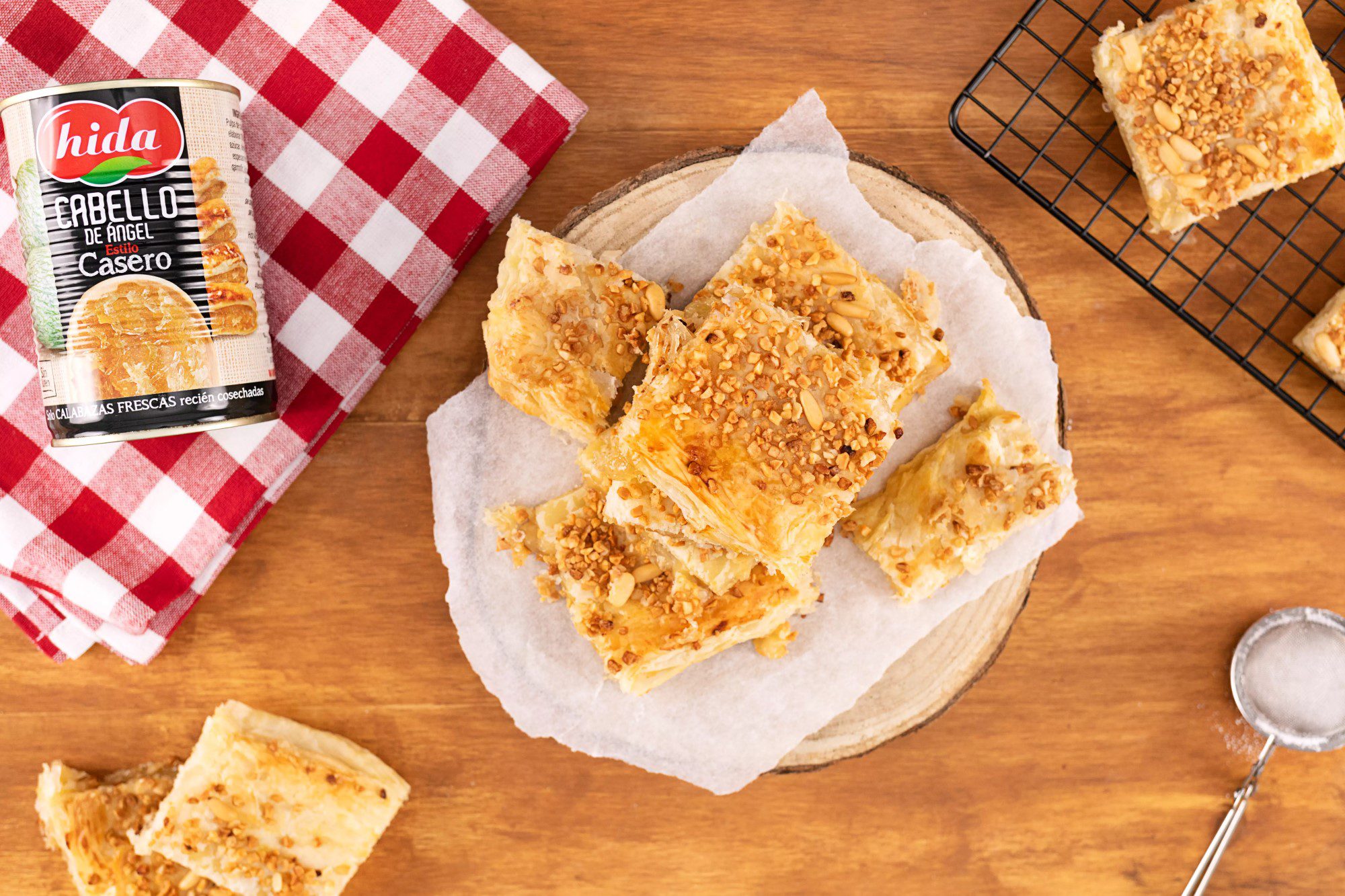 Un postre con crema pastelera es un éxito asegurado, pero para ello es imprescindible que sea una buena crema. Os enseñamos a prepararla de cero en casa y a usarla para rellenar estos hojaldres con Cabello de Ángel que son completamente irresistibles.