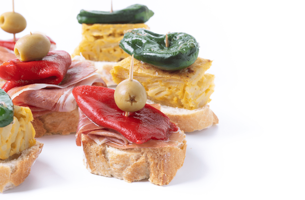 Los pintxos son pequeñas elaboraciones gastronómicas típicas del País Vasco que se sirven tradicionalmente sobre una rebanada de pan y se sujetan con un palillo. Precisamente de ahí viene su nombre: del verbo pinchar, ya que el palillo atravesaba el alimento para mantenerlo unido.