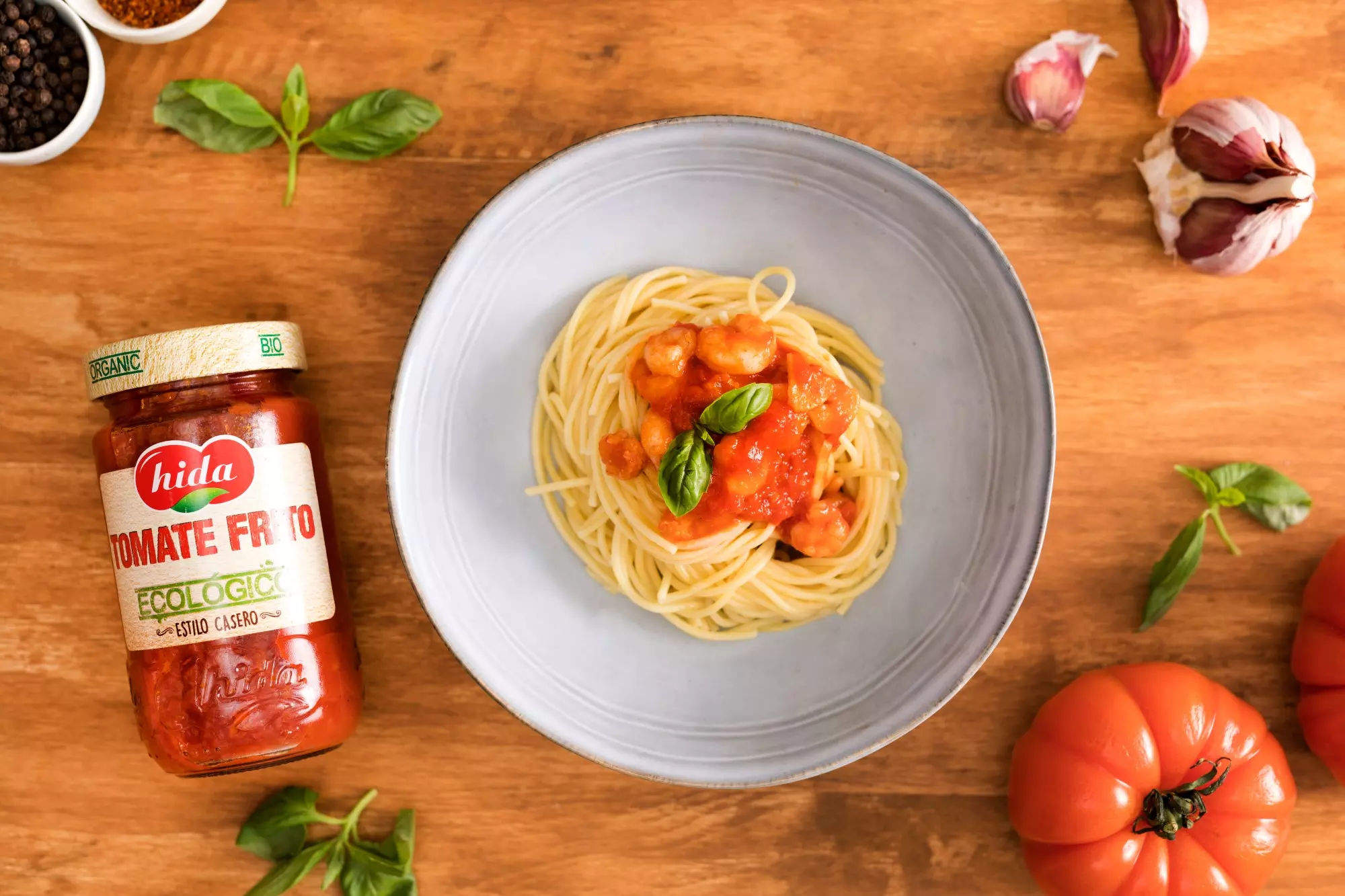 Come rico y saludable con esta deliciosa receta que hemos preparado usando nuestro Tomate Frito Ecológico, el acompañamiento ideal para un buen plato de pasta con gambas, con los mejores ingredientes ecológicos y todo el sabor de nuestro Tomate frito de siempre.